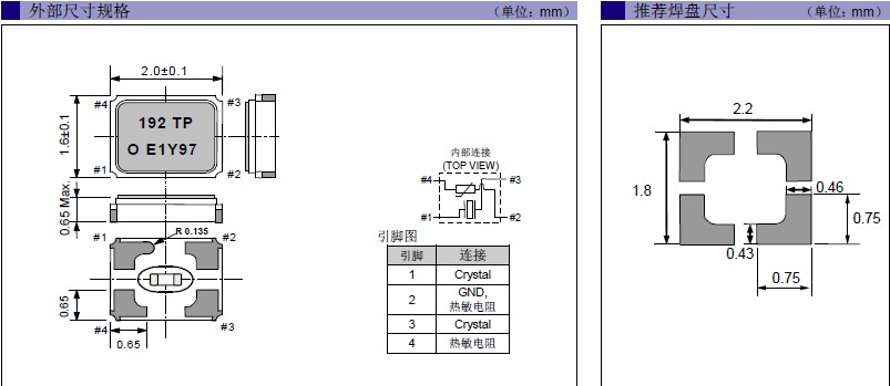 - 尺寸:2.0x1.6x0.65mm