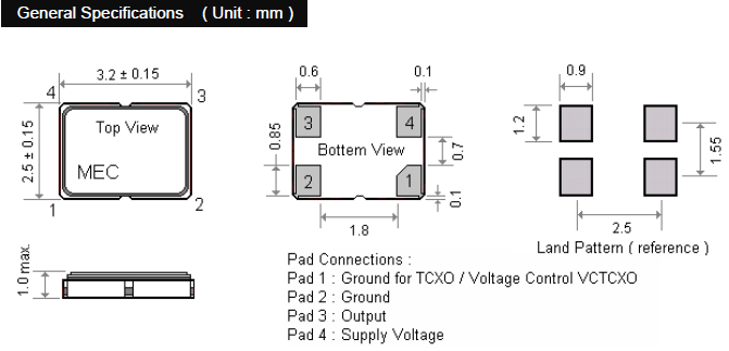 - 尺寸:3.2 x 2.5 x 1.0 mm