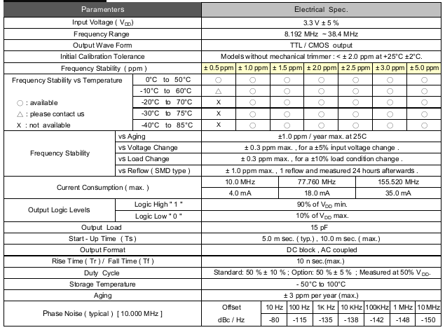 - 頻率:8.192 MHz ~ 38.4 MHz