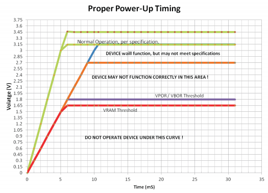 POR/BOR操作:設備啟動時會發(fā)生上電復位從Vss級別開始,掉電情況當先前供電的設備掉落時發(fā)生低于指定范圍,器件RAM保持電壓(VRAM)較低比VPOR/VBOR電壓跳變點,當VPRO /VBOR<Vcc<2.7V,電氣性能優(yōu)異恒溫晶振不符合數(shù)據(jù)手冊規(guī)范,當設備上電時,設備Vcc將越過VPOR/VBOR電壓,一旦Vcc電壓以下將超過VPOR/VBOR電壓發(fā)生:•加載易失性寄存器價值形成相應的非易失性寄存器.•TCONF寄存器將加載出廠設置節(jié)目.•該設備具有數(shù)字/模擬功能操作.