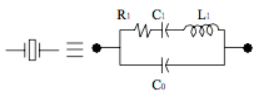 示出了石英晶體振蕩器的等效電路,以解釋控制晶體特性和性能的基本元素.它由運(yùn)動(dòng)電容C1,電感L1,串聯(lián)電阻R1??和分流電容C0組成.前三個(gè)參數(shù)被稱為石英晶體元件的“運(yùn)動(dòng)參數(shù)”.